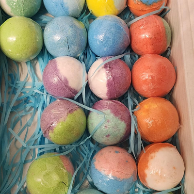 I appreciate that these are made with natural ingredients — shea butter, coconut oil, essential oils. My sensitive skin handled them perfectly. The only downside is the outer box got a little dented during shipping. The bath bombs themselves were fine though. Would be nice if the packaging was a bit more rigid for gift-giving.