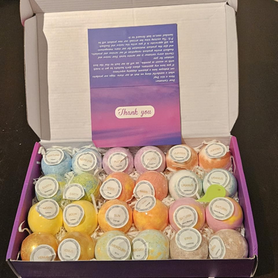 I could literally smell the bath bombs through the shipping box when it arrived 😍 Every single one was intact — no cracks, no crumbling. They're wrapped in cute tissue paper and the gift box is very presentable. I'm keeping half for myself and gifting the rest. The vanilla raspberry is TO DIE FOR.